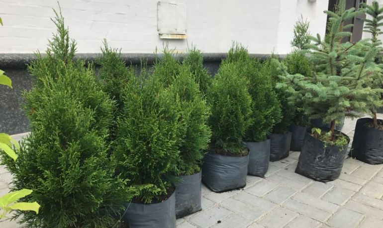 Посадка деревьев у храма в честь в честь святого великомученика Георгия Победоносца